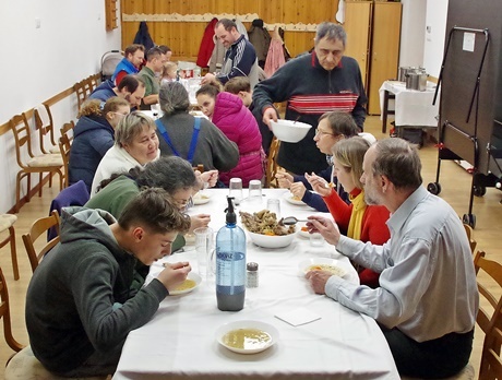 Január 17-én gyülekezeti disznótort tartottunk! Az idősebb gyülekezeti tagoknak- akik még emlékeznek erre a népi hagyományra - nosztalgikus esemény, a fiatal generációnak pedig - ha ilyenben még nem vettek részt, talán nem is láttak - egy különleges újdonság és élmény volt. Finomak voltak a friss disznótoros fogások is. Az igazi élményt azonban mindnyájunknak a közösségi megmozdulás, az együtt cselekvés és a testvéri együttlét jelentette. Istennek legyen hála, ezért a szép és gazdag alkalomért!